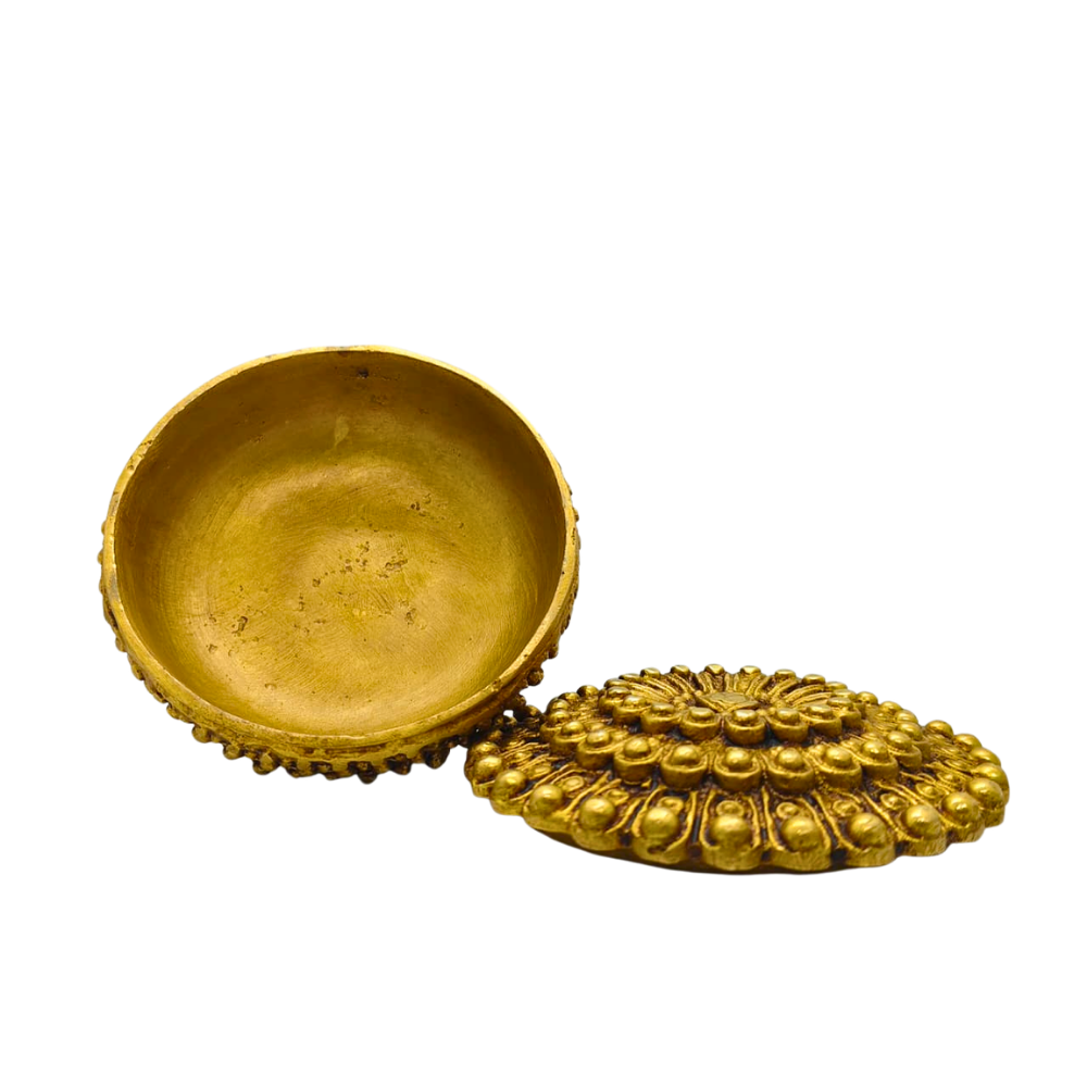 Golden Brass Round Jewelry & Kumkum Box – Spiritual Home Decor