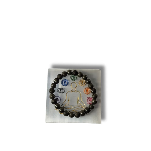 This square selenite plate is engraved with a chakra meditation design, ideal for charging crystals, energy balancing, and uplifting your meditation or altar space with harmonizing chakra energy.