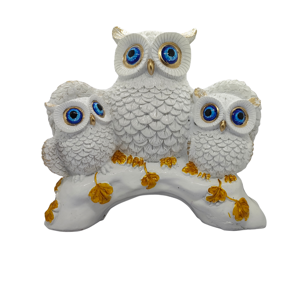 ServPuja Lucky Owl Family Statue – White Gold Vastu Décor